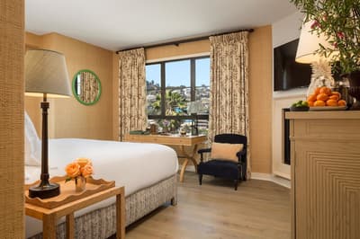 A votre arrivée au 850 San Vicente Boulevard, vous avez l’impression d’entrer de plain-pied dans le décor d’une série californienne. Avec sa jolie façade blanche, l’hôtel est niché dans une résidence aux allures de bungalow hollywoodien. Très loin de l’idée que vous vous faites d’un établissement hôtelier. En réalité, l’endroit est à mi-chemin entre boutique-hôtel de charme inspiré des propriétés résidentielles européennes et bed & breakfast haut de gamme. Totalement revisité par son propriétaire avec l’aide d’architectes et de décorateurs de renom, l’endroit mélange parfaitement luxe discret et services contemporains dans une ambiance plutôt chaleureuse. L’intérieur est hyper cosy avec une succession de petits salons qui sont de vrais espaces conviviaux. Vous avez l’impression d’arriver dans une maison d’hôtes. Dans le living-room, canapés et coussins moelleux vous invitent à faire une pause. Envie d’un drink au coin du feu ? Un bar est à votre disposition en self-service. A moins que vous ne préfériez la ravissante terrasse sur le toit avec cheminée extérieure et vue sur la ville. Dans les chambres, couleurs ensoleillées, jonc de mer et salles de bains en marbre marient luminosité californienne et raffinement à l’européenne. Une véritable oasis de calme au beau milieu du quartier animé de West Hollywood. Le point de départ idéal pour partir à l’assaut de la ville et vous faire des souvenirs en technicolor.