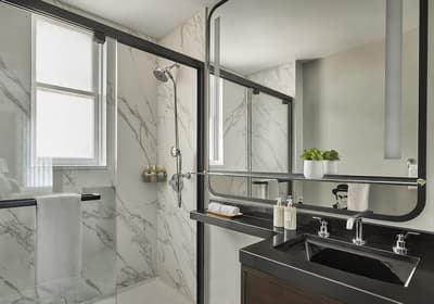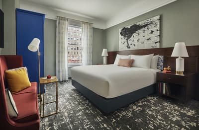 Installée aux étages supérieurs, elle profite d’un cadre encore plus calme. Cette belle chambre a tout ce qu’il faut pour un séjour des plus agréables et confortables. La grande fenêtre offre une vue reposante sur la ville. Elle accommode un lit queen ou un lit king et dispose d’un canapé dans un coin de la pièce. Salle de bain avec douche à effet de pluie.