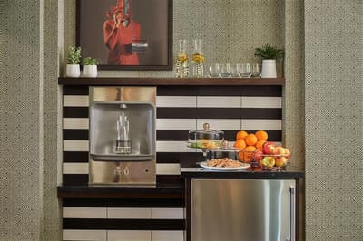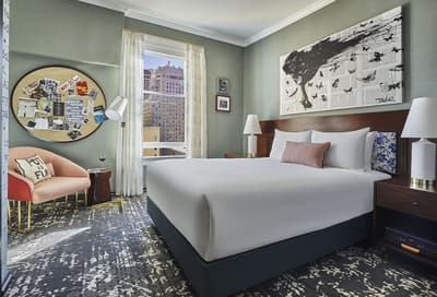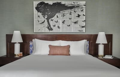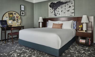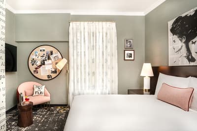 Même si pour vous, les années 50, c’est la préhistoire, vous avez probablement entendu parler de la Beat Generation. Ce mouvement littéraire et artistique qui a bouleversé l’Amérique de la seconde moitié du 20ème siècle. Pour un flashback vers une époque irrespectueuse et décapante, rendez-vous à l’hôtel Emblem. Plutôt rafraîchissant comparé aux grands chaînes standardisées ! Le hall est plein de charme et particulièrement chaleureux. Des livres omniprésents, des bougies et un immense écran sur lequel est projeté un feu de cheminée. Du bois partout, des fauteuils confortables et un bar irrésistible. Avant toute chose, commandez un Mexico Blues ou un Moloch Moloch sous le portrait d’Alan Ginsberg. Partout des œuvres d’art et des citations imprimées sur les tapis ou sur les murs. Vous êtes clairement dans un hôtel littéraire ! Une vieille machine à écrire Remington est même à disposition pour taper une lettre que l’hôtel enverra en votre nom. A l’étage, vous trouverez boissons, fruits frais et même cookies. Même déco intello-branchée dans les chambres. Les clins d’œil aux 50s et aux 60s se mélangent avec le nec plus ultra du confort moderne : wifi, machine Nespresso et Google Play sur les téléviseurs. Mais si vous préférez la lecture, vous êtes au bon endroit. Profitez-en aussi pour partir à la découverte d’un San Francisco différent. Historique, arty ou insolite, le concierge vous donnera toutes les clés !