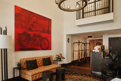Depuis son ouverture en 1926, le Figueroa occupe une place à part dans l’histoire de la ville. Il a été fondé par l’organisation YWCA pour accueillir les femmes voyageant seules, à une époque où la plupart des hôtels les refusaient. Aujourd’hui encore, l’établissement reste fidèle à ses racines féministes. Il met régulièrement en avant les œuvres d’artistes et de créatrices locales. Une dominante artistique que vous retrouvez partout dans l’hôtel. Vu de l’extérieur, le building n’est pas époustouflant. Mais quand vous arrivez dans le lobby, vous avez l’impression de pénétrer dans une superbe demeure de style colonial espagnol. Hauts plafonds avec puits de lumière, cheminée, profusion de canapés, juxtaposition de matières et de textures. Comme si vous étiez dans une immense hacienda de luxe, richement décorée. Une impression qui persiste dans le patio extérieur à la végétation luxuriante. Devant vous, une incroyable piscine en forme de … cercueil. Mais rassurez-vous, l’endroit est plein de vie et même plutôt festif avec son bar et sa terrasse. Vous pouvez y prendre un super petit-déjeuner continental gratuit ! Dans votre chambre, la déco reprend le mélange d’inspiration coloniale espagnole et d’œuvres d’art. Avec quelques touches high-tech comme un iPad qui vous relie au room-service ou à la réception. Vous pouvez même réserver la Tesla maison mise à disposition pour vos déplacements dans un rayon d’1 mile !
