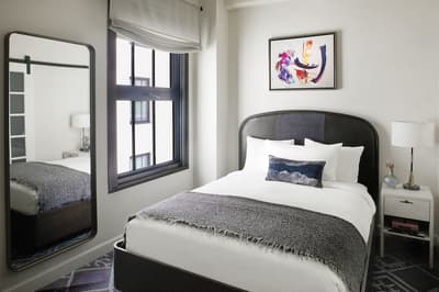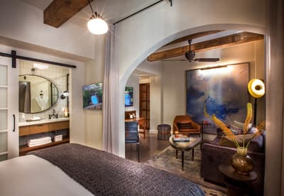 Dans un style espagnol contemporain, elle comprend des œuvres d'art locales soigneusement sélectionnées et se complète dans des tons riches et audacieux et des bords curvilignes. Après une journée de shopping, reposez-vous dans le lit king douillet. La salle de bains accessible en marbre est équipée d’une douche à effet pluie inspirée du bien-être. Le tout dans une ambiance zen !