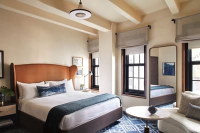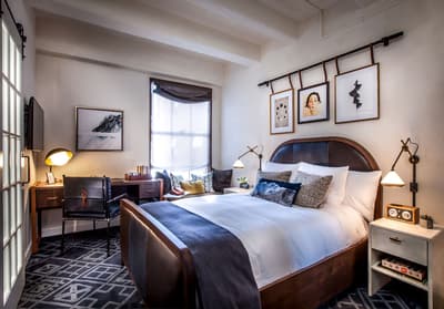 Dotée d’un lit king size, elle offre une vue imprenable sur la rue Figueroa que vous pourrez contempler du confort de votre chambre dans le coin salon séparé, tout en prenant votre thé de l’après-midi.