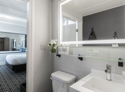 Parfaite pour une petite famille, elle est encore plus spacieuse et confortable. Elle profite d’une vue merveilleuse sur la baie de San Francisco et sur le pont. Cette belle suite a tout ce qu’il faut pour un séjour des plus agréables. Elle accommode un lit queen et le salon est meublé d’un canapé-lit et d’une table à manger. Salle de bain chic.