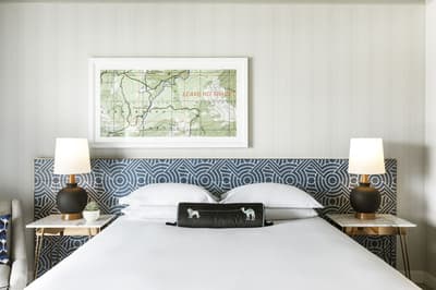 Si sa construction a suscité de vives réactions dans le voisinage, aujourd’hui tout le monde s’accorde à le dire : le Kimpton Rowan Palm Springs est une réussite. C’est même une brillante réinterprétation de la philosophie de l’indoor-outdoor flow, très en vogue aux US dans les années 1960, et qui lui a valu d’être classé dans les meilleurs hôtels de Californie par Travel + Leisure. Le show débute dès le lobby, en cathédrale et entièrement vitré. Au-dessus de la réception, un hibou géant en macramé (oui, en macramé) veille sur les guests qui viennent ici nombreux. En vrai, c'est trop stylé ! Le ton est donné, ce resort urbain est pensé dans un esprit loft, avec de grands espaces, du mobilier design et un univers à la fois industriel et arty. Et maintenant, direction le rooftop pour découvrir la toute première piscine de toit de Palm Spring. C’est LE spot à selfie pour inonder votre Insta à la tombée de la nuit ! Vous pouvez réserver votre transat ou un bed cabine pour profiter du panorama. On peut presque toucher du doigt les montagnes alentour. A l’heure du déjeuner ou du dîner, vous découvrirez les deux restaurants de l’hôtel. La déco est vraiment funky, on y retrouve les traditionnelles banquettes des diners américains en version ultra-chic, des tables de bistro dorées très bling-bling ou encore un ciel d'appliques bohèmes. Bref, on vous le disait, c’est assez réussi !