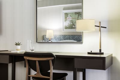 Elle bénéficie d’une décoration contemporaine avec un mobilier et des luminaires tendances et se complète harmonieusement dans des tons chaleureux. La chambre est dotée d’un lit King et la salle de bains en marbre est bien équipée. Le tout dans une atmosphère cosy !
