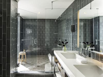 L’ensemble bénéficie d’une décoration contemporaine avec un mobilier et des luminaires tendances et se complète harmonieusement dans des tons chaleureux. La chambre est dotée de deux lits queen confortable et la salle de bains en marbre est bien équipée. Le tout dans une atmosphère cosy !