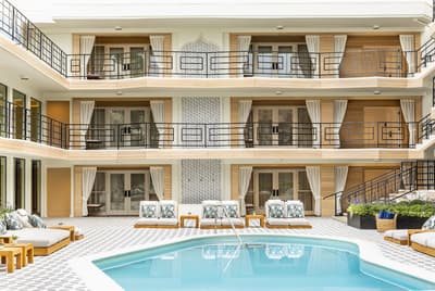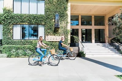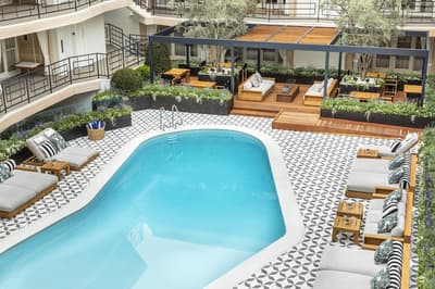 Vous avez envie d’un séjour relaxant au bord du Pacifique ? Arrêtez tout ! On a trouvé la maison de vos rêves. Nichée dans un coin discret de Santa Monica, l’Oceana est une oasis raffinée avec accès direct à la plage. L’hôtel vient d’être rénové et le résultat est absolument superbe. Dès l’arrivée, la façade végétalisée du bâtiment et l’élégance des jardins donnent le ton. Oliviers et palmiers encadrent une vue imprenable sur l’océan. Pas de doute, vous entrez dans un havre de paix. A l’image de la cour intérieure, mélange d’élégance et de luxuriance avec ses immenses jardinières. Tout autour de la piscine, transats surdimensionnés, coussins moelleux et canapés vous invitent au repos. A peine êtes-vous installé que le butler s’enquiert de vos envies. Une serviette ? Une bouteille d’eau ? Réparties tout autour de la cour, les chambres sont inondées de lumière. Totalement redesignées dans un style seaside haut de gamme, elles mélangent une palette de couleurs douces dominée par le bleu et des touches high-tech. Un Ipad vous permet de régler à volonté thermostat et éclairage. Côté restauration, l’offre est impressionnante. Vous êtes amateur de sushis ? L’Oceana convie régulièrement les chefs des restaurants Nobu pour une expérience pop-up au Sunset Terrace. Vous craignez pour votre beach body ? Aucun souci ! Du cours de yoga au personal trainer en passant par la consultation avec un nutritionniste, l’Oceana a pensé à tout !