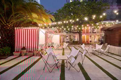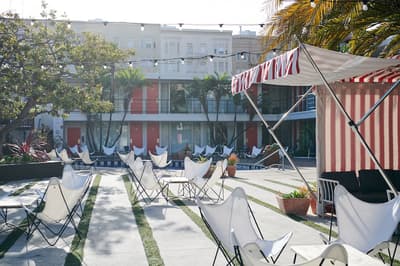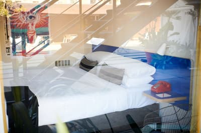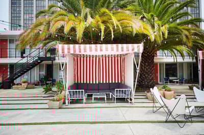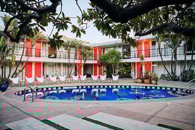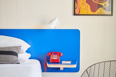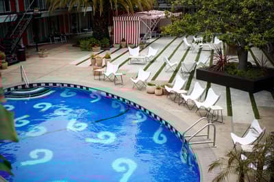 Attention, hôtel de légende ! Dans ce motel vintage entièrement rénové, vous n’êtes pas dans n’importe quel établissement ! Vous mettez vos pas dans ceux de Neil Young ou de Kurt Cobain. Rien que ça ! Depuis sa création dans les années 50, le bâtiment a connu des hauts et des bas mais l’endroit est resté une oasis de verdure et de culture pop au cœur du quartier de Tenderloin. Dès votre arrivée dans la cour intérieure, vous êtes littéralement médusé. Ce lieu est le summum de la coolitude arty. Murs colorés, statues et mosaïque, fauteuils Airborne et petites cabanes de plage. Et surtout une piscine chauffée bordée de palmiers. A ce propos, ça vous est déjà arrivé de vous baigner dans une œuvre d’art classée ? Now is your chance to do it ! Le fond de la piscine a été peint par l’artiste new yorkais Francis Forlenza. Cette cour est vraiment le point névralgique de l’hôtel. Vous pouvez y prendre votre petit-déjeuner et même y rester tard le soir, autour d’un verre et au son de la musique live. Une ambiance très "California chill", à réserver à ceux que le bruit et l’animation ne dérangent pas. A l’intérieur, le bar est tapissé d’une collection de vinyls ahurissante. Si l’isolation des chambres n’est pas à toute épreuve, les lits sont hyper confortables et les touches de déco très fun. Si une fois rentré, vous avez un coup de nostalgie, no soucy ! Du mug au peignoir de bain, vous pourrez commander tous les articles de l’hôtel en ligne.