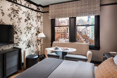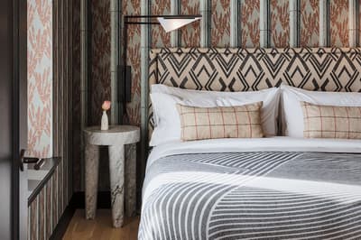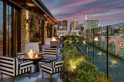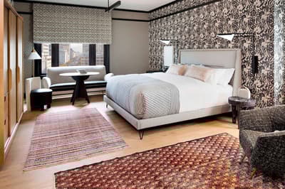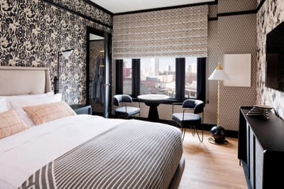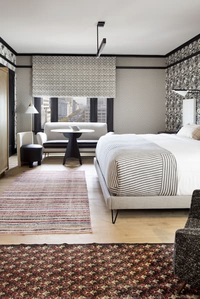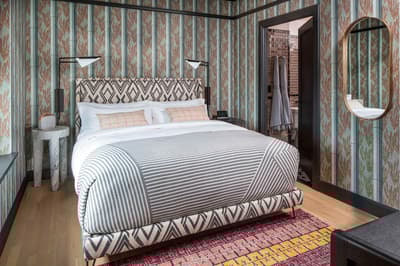 Attention les yeux. Vous êtes dans un établissement plébiscité par Vanity Fair et Condé Nast Traveler ! Mais qui est la magicienne qui a transformé cet ancien building Flatiron des années 1900 en un hôtel au chic éclectique au cœur de Mid-Market ? Tout simplement Kelly Wearstler, la papesse du design d’intérieur californien. Surnommée "la grande dame de la côte Ouest" par la presse déco, elle a imprimé sur l’hôtel un patte aussi arty que ludique. D’un luxe exubérant qui vous surprend dès le lobby. Comme un gigantesque cabinet de curiosités. Murs recouverts de miroirs ou d’œuvres d’art et papiers peints ultra graphiques. Luminaires en laiton. Canapés en velours coloré et tapis épais. Mobilier hétéroclite aux belles lignes épurées. Le bar intérieur est superbe mais on parie que vous allez préférer la terrasse sur le toit ! Hyper stylée ! Le Charmaine a d’ailleurs été qualifié par le presse locale de rooftop bar le plus hot de San Francisco. Il est très prisé et vous avez intérêt à réserver pour y déjeuner ou y bruncher. Pour vous fondre dans l’ambiance, on vous recommande le cocktail Kissin’ in the California Sun ! Grâce à la forme triangulaire du bâtiment, toutes les chambres ont vue sur la ville aux alentours. Les papiers peints sont un peu too much mais la déco est plutôt moins chargée. Le top du service ? L’appli Proper qui vous permet de demander tout ce que vous voulez. Comme réserver un vélo pour explorer la ville.