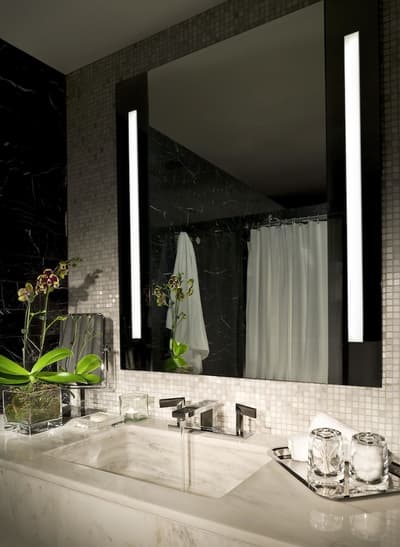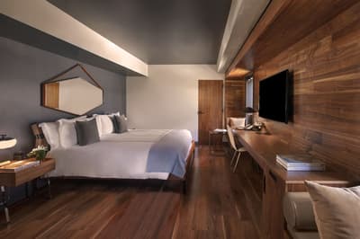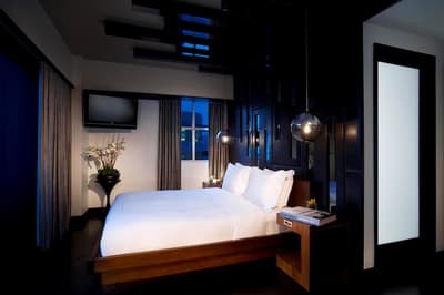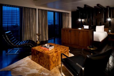 Difficile de faire plus glamour que Beverly Hills ! Au cœur du triangle d’or de LA, le quartier est synonyme de luxe et de célébrité, avec ses résidences de stars. Si la plupart des établissements hôteliers locaux jouent la carte Old Hollywood, ce n’est résolument pas le cas du Sixty ! L’hôtel est franchement moderne, plutôt trendy raffiné que West Coast décontracté. Si vous aimez le style contemporain, vous êtes au bon endroit ! Avec ses murs marbrés et sa palette de couleurs foncées, le hall peut vous paraître assez sombre. Mais des canapés élégants et des luminaires imposants réchauffent l’atmosphère. Pour retrouver le soleil, direction la terrasse. Vous y trouvez bien sûr l’incontournable piscine. Attention, celle-ci est agrémentée de cristaux Swarovski. Vous êtes quand même à LA ! Tout autour, des chaises longues et des cabanes privatives pour vous prélasser en toute intimité. Ou siroter un Strawberry Smash en provenance du bar Above Beverly Hills, plus connu des habitués sous le nom d’ABH. A la nuit tombée, la ville se met à scintiller et la vue magique devient tout simplement féérique ! Dans les chambres, les poutres sombres et les planchers en bois noirci ajoutent une petite touche asiatique à un décor très esthétique. Envie de faire travailler vos abdos ? Le boxeur Danny Musico vous attend à la salle de sports. Il a entraîné Sylvester Stallone pour le film Rocky. Mais ne vous inquiétez pas, il est super gentil !