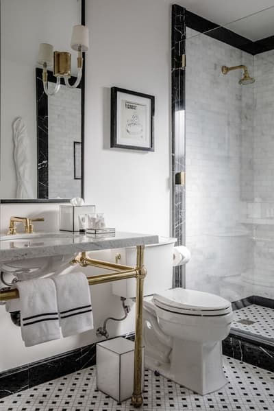 Conçue par Martyn Lawrence Bullard, les murs sont en partie recouverts de tapisseries fleuries et ornés de tableaux et se complètent harmonieusement par des luminaires style classique. La chambre est dotée d’un superbe lit King à baldaquin avec des draps Revival New York. Après une excursion d’une journée dans la ville, vous pourrez vous rafraîchir dans la salle de bains équipée d’une somptueuse douche vitrée, d’un lavabo double et d’une baignoire sur pattes. Le tout dans une ambiance conviviale !