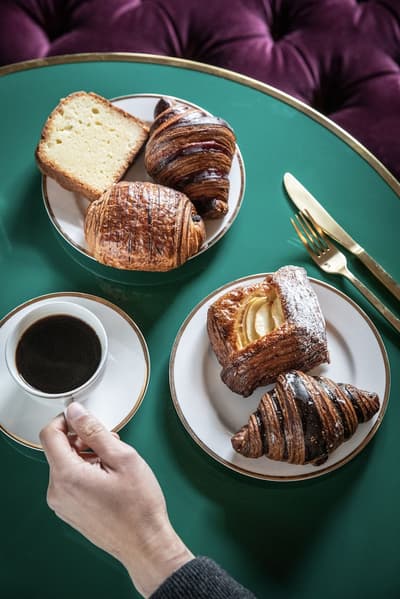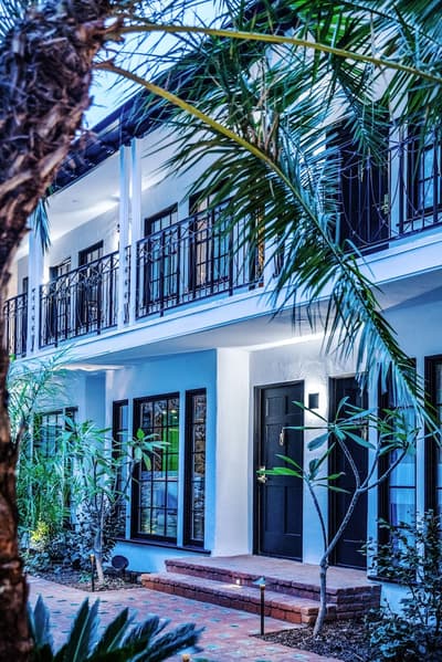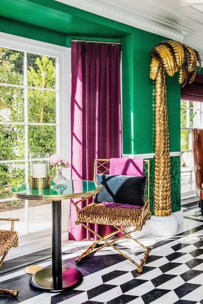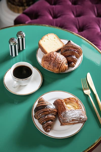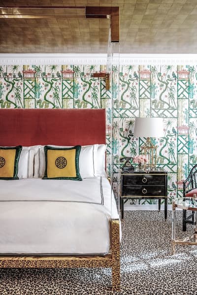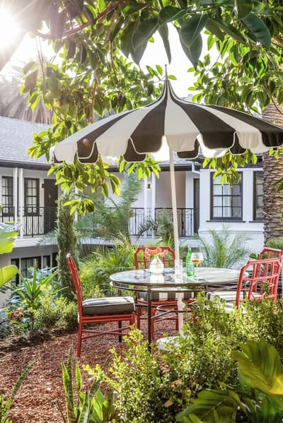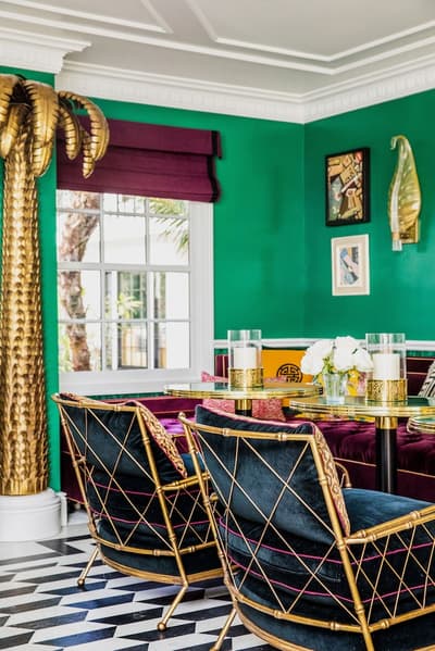 Envie de remonter le temps pour plonger dans l’âge d’or hollywoodien ? Bienvenue au Prospect ! Niché dans le quartier de Whitley Heights où résidaient entre autres Marlene Dietrich ou Gloria Swanson, ce boutique-hôtel de luxe est installé dans une propriété de style Régence des années 30. Le bâtiment de trois étages a été entièrement réhabilité pour retrouver le faste des somptueuses résidences des stars. Pour ce faire, les propriétaires ont fait appel au célèbre designer britannique Martyn Lawrence Bullard, qui compte Elton John et la famille Kardashian parmi ses clients. Au premier coup d’œil, la façade noire et blanche et ses auvents rayés peuvent vous sembler classiques. A l’intérieur, c’est tout sauf classique ! Dès que vous avez passé la porte, le hall décline le chic en version maximaliste. Votre regard est happé par les murs vert émeraude, les palmiers dorés, les formes géométriques au sol et les tableaux d’inspiration cubiste. Dans un coin, un bar élégant et des banquettes en velours rose foncé délimitent un espace un peu plus décontracté. Dans la cour extérieure, un jardin plus paisible à la végétation luxuriante. Quelques tables et des parasols pour savourer votre petit-déjeuner dans la fraicheur du matin. Un véritable havre de paix avec fontaine et même cheminée. La déco de chacune des suites est thématisée autour d’une star avec photos et affiches. Vous êtes plutôt Marylin Monroe ou Steve McQueen ?