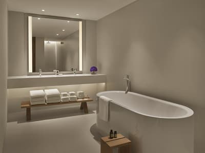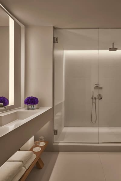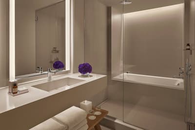 Idéale pour un séjour romantique, elle profite d’une vue exceptionnelle sur les lumières des bâtiments que vous pourrez contempler depuis votre chambre ou sur le balcon autour d’un dîner aux chandelles avec votre compagnon. À noter qu’elle est accessible aux malentendants avec des alarmes visuelles et des dispositifs de notification pour la porte et le téléphone et aux personnes à mobilité réduite.
