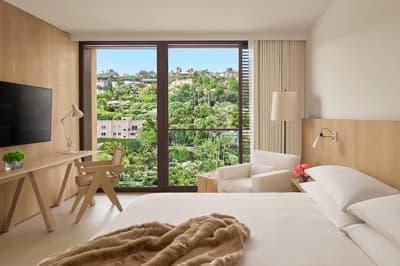 Le West Hollywood EDITION est un repaire pour les clubbers épicuriens, les voyageurs trendy, les hipsters arty et la jet set hollywoodienne. Cette adresse devenue incontournable a changé durablement le visage de Sunset Boulevard, grâce à un concept unique en son genre, conçu comme une escale de verdure à l’écart de l’agitation. Derrière d’épaisses portes en bois, un impressionnant hall en bois de cèdre et travertin italien sur 3 niveaux vous ouvre les portes du paradis ! Le West Hollywood EDITION est comme une oasis, une jungle au cœur de la ville. Tellement stylé ! Son toit-terrasse est carrément incroyable, avec sa piscine en rooftop et son jardin tropical. Une vraie dinguerie. Ici un seul mot d’ordre : chill, fun and sunset ! C’est l’épicentre de cet hôtel, un lieu unique avec une panorama à 360 sur LA et Hollywood. Mais ce n’est pas fini : en sous-sol se trouve l’un des clubs les plus sélects du coin, qui vous fera revivre les grandes heures de la nigthlife à Sunset Boulevard. Vous voulez vivre comme une star en vacances à LA ? Vous êtes au bon endroit !