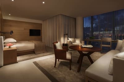 Luxueuse, elle est conçue pour accueillir confortablement trois personnes et offre une vue époustouflante sur la ville surtout le soir avec les lumières de la ville. À noter qu’une chambre communicante peut être disponible.