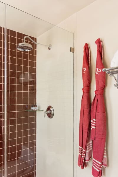 Peignoirs en peluche, Machine à café Nespresso, Produits de bain de luxe Diptyque.