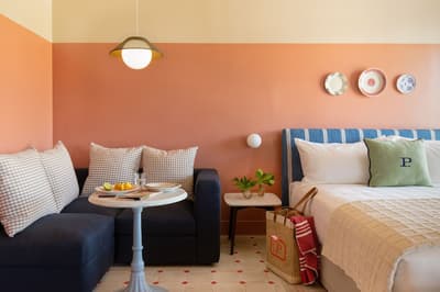 Si on cherchait la définition de “kitsch” dans le dictionnaire, on tomberait sûrement sur cet hôtel dans la catégorie des exemples. Mais c’est loin d’être une mauvaise chose, bien au contraire ! L’hôtel embrasse son côté kitsch, lui donnant une aura particulière à la croisée du vintage et du mystique. Dès l’entrée, vous remarquerez ce design typique des diners américains : des néons, un carrelage damier, des palmiers et surtout un bâtiment blanc à prendre comme une ode au style art déco. A l’intérieur, c’est tout pareil ! Le lobby se prend pour une maison en bord de mer et les chambres vous transporteront directement un siècle en arrière. Et puisqu’il y en a très peu, on s’y sent très bien dans cet hôtel. Il y a même un vieux frigo SMEG dans chacune d’entre elles, si jamais le reste ne suffisait pas. Du côté de la piscine, tout aussi kitsch ! Les chaises longues à rayures se mélangent autour de la piscine. Enfilez votre meilleur maillot une pièce et vos plus belles lunettes de soleil rétro et c’est parti pour un shooting photo pour Instagram. Et attendez, vous savez pas la meilleure ? Un beach butler peut vous transporter jusqu’à la plage de votre choix dans un pick-up. Et ouais, en plus de ça, vous avez droit à un service VIP…
