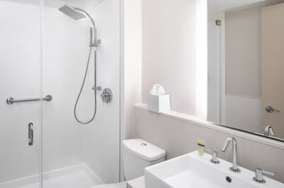Cette belle chambre a tout ce qu’il faut pour un séjour des plus agréables et confortables. La grande fenêtre profite d’une vue merveilleuse sur la ville vibrante. L’atmosphère est sereine et reposante. Elle accommode un grand lit et dispose d’un canapé dans un coin de la pièce. Salle de bain avec douche à effet de pluie.