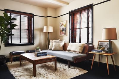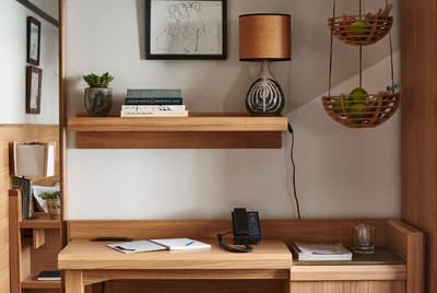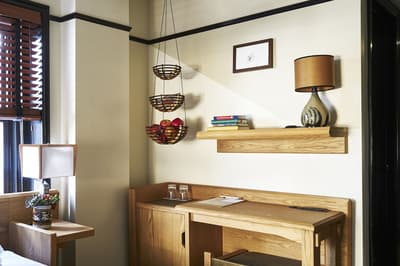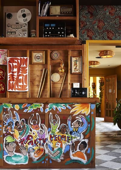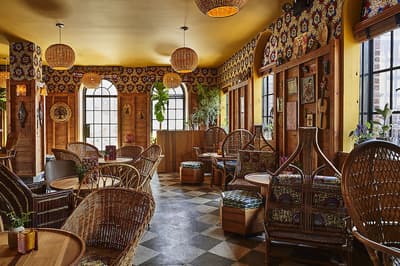 Comme un air de The Socialite Family, de plaids en (fausse) fourrure et d’hôtellerie-galerie à deux pas du Flatiron... Les moulures du Freehand New York se mêlent à un blanc cassé presque crème : comme une toile vide où tout est possible. Et tout est possible. Des tableaux abstraits couleur citron givré, du bois poncé, ciré, laqué, taillé. Des sculptures abstraites. Mais aussi des colonnes de pierre comme sorties d’un temple asiatique, des fauteuils en tissu éponge et de larges luminaires en boule de papiers crépons. Rien n’a de logique, mais chaque objet semble s’adapter à l’autre avec une facilité déconcertante. Et les chambres sont d’un raffinement so instagrammable : les tables de chevet fusionnent avec les lits, les murs osent les fresques contemporaines et les salles de bain se couvrent de bois à la japonaise. Ben ouais, pourquoi respecter des codes précis quand le comble du chic est de tout mélanger ? C’est aussi la doctrine du restaurant Simon & The Whale. En plus d’avoir un nom cool, l’intérieur s’en donne à cœur joie, recouvrant les cloisons de carreaux bleu océan et éclairant le bar de luminaires en métal doré façon bateau. Le Studio fait aussi partie des endroits dont vous ne pourrez plus vous passer, signé de la talentueuse agence Roman et Williams : c'est le spot parfait pour envoyer un mail, boire son macchiato brûlant et immortaliser ce rayon de soleil sur le parquet chevron. Scénographie parfaite pour votre prochaine story !