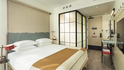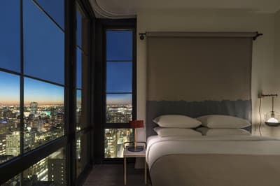 Conçue pour les familles, elle est plus spacieuse et confortable. Cette belle chambre a tout le nécessaire pour un séjour merveilleux. De sa grande fenêtre, elle profite d’une vue merveilleuse sur la ville vibrante à la tombée de la nuit. L'atmosphère est sereine et reposante. Elle accommode 2 lits queen. Salle de bain avec douche à effet de pluie.