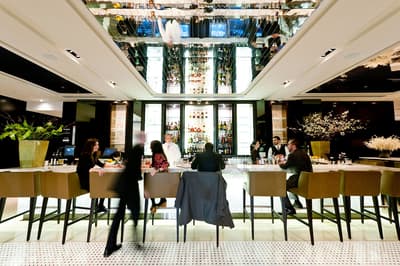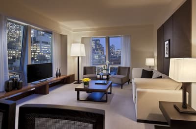 Laissez-vous enivrer par une affolante odeur de fleur de gingembre... vous êtes dans un des halls d’hôtel les plus raffinés de la Grosse Pomme ! Et ce parfum d’ambiance vous suit jusqu’à la réception longiligne, illuminée en doré. L’un des concierges en uniforme vous fait remarquer que vos bagages se trouvent déjà en chambre, avant de vous inviter à le suivre. C'est avec regret que vous abandonnez les canapés en velours et la magnifique cheminée à l'éthanol. Un mal pour un bien, étant donné que vous empruntez pour la première fois l'impressionnant escalier noir et blanc — qui entoure de manière aérienne une sculpture moderne en forme de goutte géante. Intimes et accueillants, les étages vous enveloppent d’un luxe sur mesure où le design a été étudié avec soin : sol en granit lustré, mobilier en chêne foncé, compositions florales et collection d'art du New-yorkais Alex Katz. Les chambres se définissent par un chic minimaliste, entre meubles en noyer réchauffés par le soleil et moquette gris perle. Et il se peut que vous fondiez dans l’une des baignoires en marbre avant de vous décider à descendre au Ai Fiori... La carte est signée du chef étoilé Michael White, et agrémente ses pasta de truffe et ses verres de Campari.