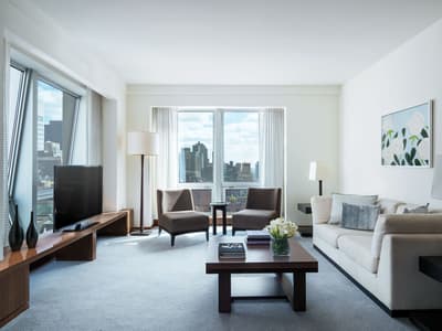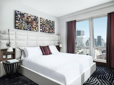 Le top ! Elle profite d’une vue merveilleuse sur la ville vibrante de New York. Purement confortable, cette belle chambre a tout le nécessaire pour un séjour des plus agréables. L’atmosphère est reposante et sereine. Elle accommode un lit king et dispose de beaux fauteuils dans le coin salon. Salle de bain avec baignoire.