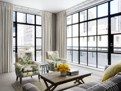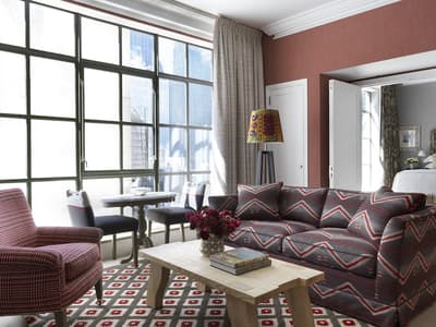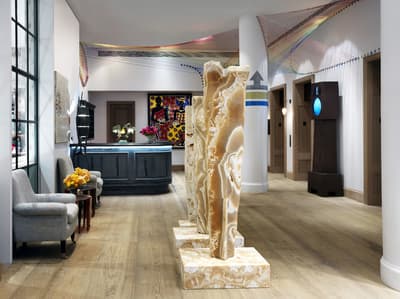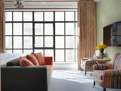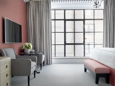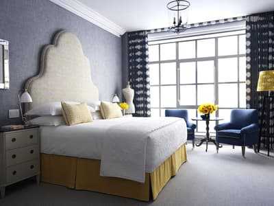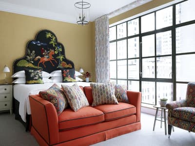 Quand un couple de designers signe un des hôtels les plus excentriques de Manhattan, on s’y presse comme si un nouveau resto avait ouvert sur la Fifth Avenue ! Et justement, le très chic The Whitby a posé ses valises juste à côté, osant le mélange des genres aux côtés des galeries de la 56e rue. L’adresse fait parler d'elle dans le tout Manhattan pour son atmosphère on ne peut plus arty, qui déconstruit les idées reçues sur la déco. Des assiettes en porcelaine s’affichent aux murs et on sert le thé dans des fauteuils en tissu africain. Quant à la grandfather clock du lobby, elle se dresse fièrement face à l'installation de fils multicolores de l’artiste Hermione Skye. Vous vous imaginez déjà que The Whitby Restaurant and Bar est tout aussi fantaisiste. On ne va pas vous contredire ! À première vue, les chaises de bar en cuir rouge et blanc font face à un bar ambiance « diner » à l’américaine. Mais en relevant la tête, c’est au Maroc que vous serez propulsé, nez à nez avec une multitude de paniers en osiers accrochés comme dans les souks. Dans les assiettes en porcelaine anglaise, une cuisine healthy, qui veille autant à régaler vos papilles qu'à la provenance des produits. Et après la comfy food, place à la comfy room ! Tomber dans les bras de Morphée n’a jamais été aussi facile qu’avec une tête de lit rembourrée, des rideaux occultants colorés et des tapis molletonnés.