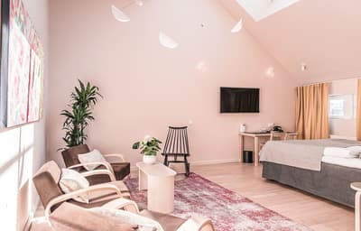 Vous aimez les designs qui sortent un peu de l’ordinaire ? Alors l’Hôtel Helka pourrait bien vous taper dans l’œil. Niché dans un grand batiment clair de cinq étages posé à l’angle de deux grands boulevards dans le cœur d’Helsinki, l’endroit cache des lofts couleur rose bonbon et des chambres originales aux murs designés par des artistes contemporains – c’est d’autant plus sympa que chacune a un style différent. À vous de voir si vous préférez dormir dans un doux écrin rose ou plutôt dans un décor aquarelle peuplé de serpents et de fleurs de lys. Pas de panique il y aussi des chambres plus classiques avec de fines touches de déco apportées par petites plantes plantes ou des coussins à motif colorés. Dans les deux cas vous aurez droit à un chouette intérieur avec des fournitures signées Alvar Aalto (perso on aime beaucoup les luminaires blancs et les gros sofa gris qui ont l’air terriblement moelleux) et à un petit déjeuner fabuleux préparé à base de produits bios et locaux. Il faut dire qu’Helka tient à se positionner en faveur du tourisme durable, ce qui passe par la cuisine mais aussi par des actions concrète pour économiser l’énergie et mieux gérer les déchets. Il cumule d’ailleurs deux labels éco-responsables. Reste plus qu’à aller se faire une bonne suée ressourçante dans le sauna privé de l’hôtel et filer profiter des évènements mis en avant dans l’agenda de l’hôtel. À moins que vous préfériez flâner le quartier ou rejoindre le centre ville d’Helsinki (facile, il est pas très loin et il y a plein de transports en commun dans les parages.