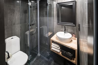 Élégamment décorée, elle comprend un mobilier en bois blanc, des accessoires tendances et se complète dans des tons doux. La chambre est dotée d’un lit double de haute qualité ou de deux lits séparés. La salle de bains est équipée d’une douche à effet pluie et d’un chauffage au sol. Le tout dans une ambiance polaire !
