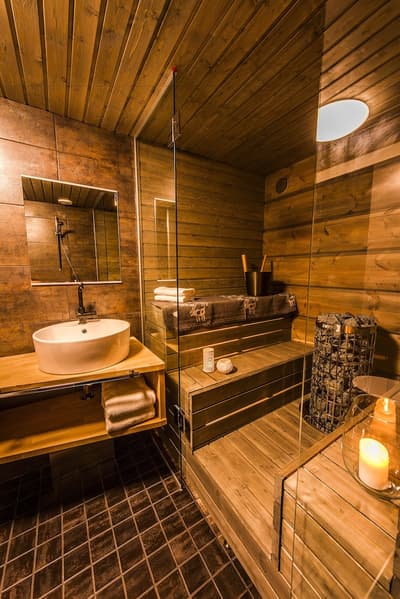 Dans une décoration rustique, elle comprend un mobilier en bois, une cheminée pour vous réchauffer après une journée active d'aventures arctiques et vous prélasser dans le sauna privé. Vous pourrez vous détendre et recevoir vos invités dans le salon luxueux équipé également d’un canapé-lit pour deux personnes. La chambre est dotée de lits doubles de haute qualité et la salle de bains comprend une douche et un WC. Le tout dans une ambiance polaire !