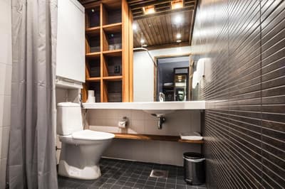 Dans un style de décoration contemporaine, elle comprend un beau carrelage, un escalier en bois et des luminaires design. La chambre est bien éclairée et la salle de bains est équipée d’une douche. L'utilisation du spa Amethyst est incluse dans le prix lors d'un séjour dans les chambres d'hôtel et dans les suites Tunturi et Amethyst. Le tout dans une ambiance cosy !