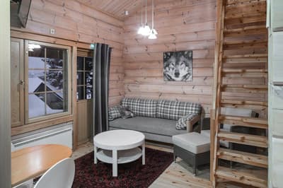 Pouvant accueillir une petite famille, il comprend une terrasse meublée d’où vous pourrez vous détendre et contempler la vue imprenable sur le paysage naturel. À noter que les pistes et les pentes d'Ounasvaara sont disséminées dans la cour.