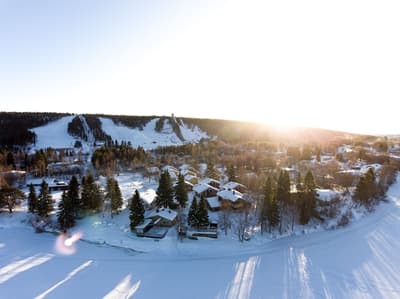 Un village de chalets en bois trop mignons qui émerveillera petits et grands ! Saunas privés, activités lapones, cuisine locale excellente et ski à proximité.