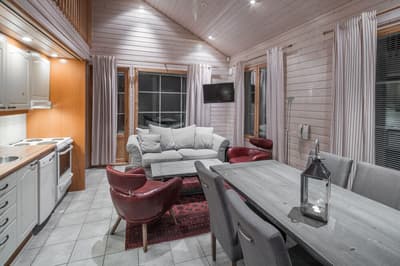Cette suite en rondins de bois est située sur la rive de Kemijoki et grâce aux grandes fenêtres vous pourrez contempler la vue en toute sérénité. Après vos activités de la journée, détendez-vous sur la terrasse meublée tout en sirotant votre café du matin.