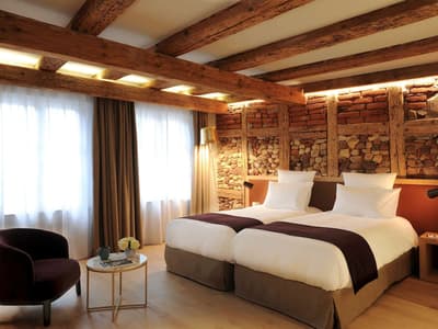 Pourquoi 5 Terres ? Pour évoquer les cinq types de terres sur lesquelles poussent les vignes du Pays de Barr, dans le Bas-Rhin : le schiste, le calcaire, l’argile, le grès, le granit. Labellisé MGallery Hotel Collection, l'établissement, rénové en 2014 dans le plus grand respect de sa riche histoire, aime d'abord honorer le vignoble qui l'entoure. Et il le fait bien ! Dans cette maison, qui salue la façade de la mairie classée monument historique, la vigne est juste omniprésente. Au bar et au resto déjà, où on met en avant les producteurs de la région qui privilégient une viticulture raisonnée et bio. Au spa aussi, où le soin signature marie les pépins de raisin de la vigne et les sels minéraux de rubis. Et du balcon de la suite Signature, vous aurez une zoliiie vue sur le vignoble barrois ! Vignoble que vous ne manquerez pas de visiter : vous être quand même sur la fameuse route des Vins d'Alsace ! Allez, on s'installe dans une vieille voiture pour le parcourir avant de déguster un des grands crus bio du Bas-Rhin pour accompagner un pique-nique champêtre. Quand le vin est tiré, dit l'adage, il faut le boire… Ajoutons : surtout s'il est bon !