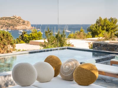 Ça vous branche, un immense resort 5 étoiles au bord de la mer Egée ? Si oui, considérez Grecotel Cape Sounio comme une piste à étudier. Déjà, le luxueux complexe se dresse sur un ancien site archéologique grec avec en face le légendaire temple de Poséidon – la classe. À l’intérieur aussi c’est l'élégance absolue : imaginez une bâtisse couleur sable colossale à l’allure de temple antique soutenues par des colonnes – c’est là que se trouvent deux des quatre restaurants chics de l’hôtel, où l’on sert une cuisine à la fois grecque et internationale composée en partie de produits frais et locaux. Devant, les ruines d’antan jouxtent l’eau bleutée de la grande piscine du complexe. Vous êtes plutôt pour les bains de mer ? Pas de soucis, quelques pas et hop, vous rejoignez les transats moelleux de la plage privée. Sauf si vous préférez vous diriger vers le SPA de 350 m² et ses thérapies naturelles à base de plantes locales. Par contre, vous risquez d’avoir du mal à vous décider entre 8 catégories de bungalows et les 13 catégories villas et suites de (jusqu'à 350m² !), qui disposent tous d’un intérieur lumineux et épuré. Notez qu’elles sont disposés en amphithéâtre et permettent donc un tête-à-tête intimiste avec ce décor entre mer, pin parasols et vestiges grecs... Et sinon, côté sorties, vous préférez le vol en paratrike (sorte de parapente à moteur qui promet des perspectives aériennes fameuses) ou bien la dégustation dans les vignobles réputés du coin — pour ne citer que ceux là ? Le luxe, c'est d'abord le choix.