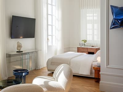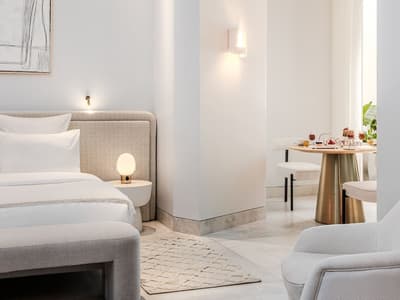 Dolli at Acropolis est un vrai petit bijou caché dans le cœur d’Athènes. Niché dans un haut bâtiment tout blanc et hyper élégant, qui est d’ailleurs classé, c’est l’un des hôtels 5 étoiles les plus beaux de la capitale Grecque. Sol marbré et grands murs blancs, pièces d’art de collection (antiques et contemporaines) disposées ça et là, hauteur de plafond remarquable : le hall annonce déjà la couleur. Ici, tout n’est que classe et finesse. Rendez-vous sur le rooftop de l’hôtel, au 5e étage, pour admirer la vue royale sur le Vieil Athènes, et surtout sur l’Acropole (son emblème le plus célèbre), tout en dégustant une cuisine internationale raffinée ou bien en faisant trempette dans la piscine à ciel ouvert. Oh, et il y a même un bar secret caché dans une bibliothèque, où on peut goûter une fine sélection de spiritueux. Les chambres, suites et appartements du Dolli sont très lumineuses et pourvues de balles de bain tout en marbre. Les plus luxueuses ont vue sur l’Acropole, qui n’est qu’à 15 minutes à pattes de là. N’hésitez pas à sortir vous balader pour découvrir tout ça et explorer les autres sites antiques majeurs qui sont dans les parages. On précise que le Dolli dépend du groupe local Grecotel qui s’est engagé dans un vaste programme de durabilité autour de la préservation des ressources et de l’environnement et s’inscrit aussi dans une démarche respectueuse vis-à-vis de ses employés.