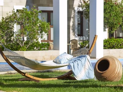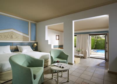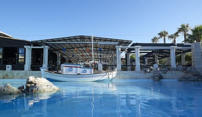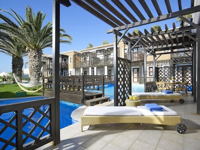 Vous cherchez un hôtel pour prendre soin de vous, que ce soit pour vous relaxer, vous ressourcer ou même perdre quelques centimètres de tour de taille ? Vous êtes au bon endroit au Aldemar Royal Mare Luxury & Thalasso Resort ! Avec option all inclusive qui plus est ! Avant de pousser les portes du spa qui est carrément un centre de thalasso de 4000 m2, il faut d’abord savoir que l’hôtel, immense, propose une vraie vie de village à la crétoise. Les bâtiments sont parfaitement intégrés dans le paysage peuplé d’essences locales, de fleurs et de palmiers canons. On prend plaisir à se promener jusqu’à la piscine ou jusqu’à la plage en marchant sur ces chemins pavés colorés. Les chambres dévoilent une décoration moderne et classique dans les tons de la Méditerranée de bleus et de beiges. Et certaines détiennent leur propre piscine privée partagée avec d’autres chambres ou carrément exclusive ! Le buffet international est de qualité, et même si on peut aussi manger méditerranéen, italien ou japonais, on craque pour la terrasse de l’Albatros en bord de mer avec ses grillades et ses salades. Bon, et le meilleur pour la fin : le spa offre des soins hallucinants sur-mesure en fonction de vos besoins. Son atmosphère digne de la Grèce antique est dingue sur la partie orientale, et vous trouverez à coup sûr la bonne expérience à vivre pour repartir complètement reboosté. Idéal en famille mais aussi en couple pour des vacances proches de l’idylle.