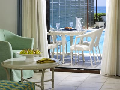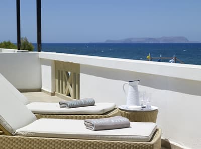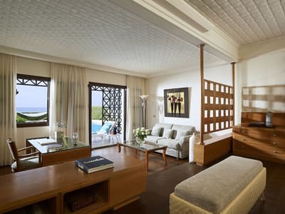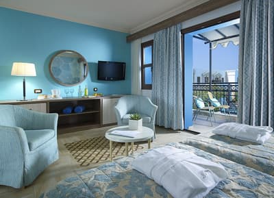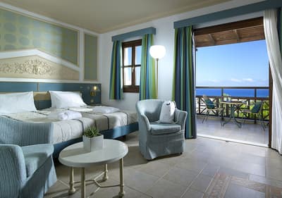 De son balcon aménagé de belles chaises, elle profite d’une vue imprenable sur l’océan. L'atmosphère est sereine et reposante. Elle accommode un lit double ou des lits jumeaux et dispose de beaux fauteuils dans son coin salon. Salle de bain avec baignoire ou douche à effet de pluie.