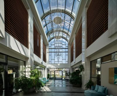 Qui veut un hôtel 5 étoiles avec les pieds dans l’eau pour ses vacances en Grèce ? Situé au bord d’une plage sur la belle île de Crète, L’Amira Luxury Resort propose un aller direct pour la mer Egée dans un cadre moderne qui vend du rêve. Ici, les suites et chambres à la déco sobre et minimaliste sont nombreuses (172 au total) et donnent en partie sur les flots bleutés. On voit encore mieux ceux-ci depuis les trois restos de l’hôtel, qui distillent une cuisine haut de gamme aux couleurs locales et internationales. Pas mal comme panorama pour un dîner gastronomique. Encore mieux : l’hôtel propose un paquet d’excursions pour aller faire coucou aux poissons de la Méditerranée en combi d’homme grenouille ou bien pour glisser sur les vagues à bord d’un canoë ou d’un jet ski. Et si vous en avez marre de l’eau salée et du sable, direction le spa de la maison – vous devriez apprécier la piscine avec ses hydro-jets spécial anti-stress et ses bains thérapeutiques. Il y a même un salon de coiffure pour vous tailler une coupe du tonnerre avant de partir en balade. À moins que vous préfériez vous entraîner en compagnie d’un coach sportif sur les équipements de la salle de fitness ? Notez pour finir que l’Amira Luxury Resort défend un modèle de management empreint d’humanisme et a mis en place moult pratiques durables autour de la protection de l’écosystème et de la réduction de ses dépenses énergétiques.
