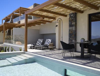 Pouvant accueillir un couple avec un enfant, cette chambre luxueuse dispose d’une véranda privée meublée de 30 m² avec table à manger et chaises pour des dîners et déjeuners festifs. Nagez en toute intimité de jour comme de nuit dans la piscine privée et détendez-vous dans les transats en lisant votre livre préféré.