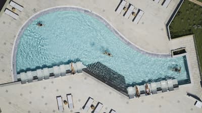 Elle profite d’une véranda privée meublée de 30 m² avec table à manger et chaises pour des dîners et déjeuners festifs. Nagez dans le bassin d'eau douce de 15 m² et prenez des bains de soleil sur les transats en toute intimité. Vous pourrez également prendre des bains rafraîchissants sous la douche extérieure quand vous le voulez. À noter qu’un lit bébé peut être disponible sur demande.