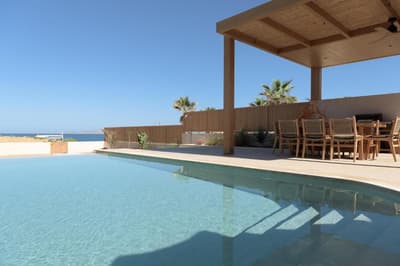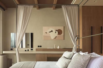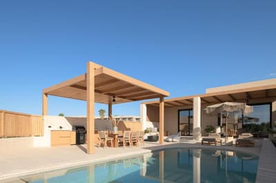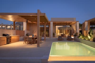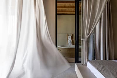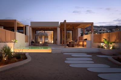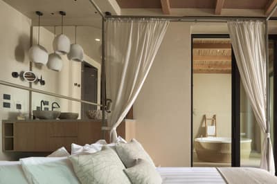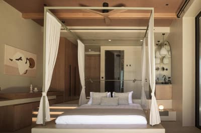 Adeptes des escapades amoureuses sans aucun kids à des kilomètres ? Vous êtes arrivés à bon port ! Bienvenue aux Cicada Suites. Seules six maisonnettes sont proposées pour garder ce havre de paix aussi précieux que possible. Face à la mer, ces maisons au design élégant, aux grandes terrasses boisées et aux intérieurs bohèmes nous font vivre une expérience unique. Vous l’aurez compris, on ne fait pas les choses à moitié aux Cicada Suites ! Enfilez-donc votre peignoir et vos chaussons, et suivez-nous ! Les six écrins de moins de 90 m2 possèdent leurs propres piscines, jacuzzi, terrasse, et salle de sport avec vue sur la mer en option ! Votre séjour promet d’être exceptionnel, et nous n’avons aucun doute là-dessus ! Pour un break revitalisant, direction le Bleu Spa avec ses patios grecs et ses soins authentiques, puis faites un saut à la plage privée pour lézarder. On profite de l’instant présent avant d’aller se remplir le ventre au restaurant intimiste et ouvert sur la plage des Cicada. Ses plats grecs et son maître sushi sont un sans-faute. Et avec une éthique axée sur des produits frais de qualité, il a tous les bons arguments. Entre les palmiers et les toiles tendues ombragées, on y passe volontiers la journée ! Bon, on vous invite tout de même à aller voir la conciergerie pour organiser deux ou trois excursions à vélo avec des locaux afin de découvrir au mieux la beauté des Cyclades !
