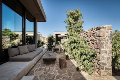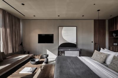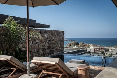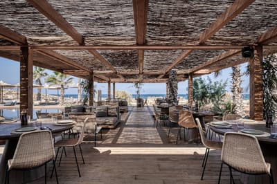 Un hôtel sur lequel il faut miser ! Après avoir récemment intégré le Groupe Marriott, l’établissement est en train de monter en puissance. Il doit son nouveau nom à "l'ef zeen" de l’antiquité grecque. Une expression qui signifie tout à la fois bien-être et art de vivre. C’est ce qui vous attend dans ce resort familial bâti à flanc de colline sur une zone vierge de la côte crétoise. Entre les plantes exotiques, la végétation luxuriante et le bois omniprésent, vous aurez l’impression d’être sous les Tropiques. Pourtant, vous êtes bien en Crète. L’architecture aux lignes pures est très moderne. La décoration on ne peut plus trendy. Un mélange harmonieux de brun et d’ocre et de matériaux bruts. Béton, carreaux de ciment et pierre de taille. Les parasols de paille donne à l’immense piscine un petit air des Antilles. Envie d’un cocktail signature servi sur votre chaise longue ? Il vous suffit d’appuyer sur un bouton ! La découverte de votre chambre est une vraie surprise, très loin du blanc immaculé des hôtels de bord de plage. Le design brut et minéral des bungalows décline toute la palette des bruns. Et le bois foncé des meubles accentue cette sensation. Pas top si vous aimez le style ultra cosy. Mais indéniablement élégant et apaisant. Petit break fitness sur les machines dernier cri de la salle de gym en plein air et vous voilà parti pour une randonnée dans les somptueuses gorges de Samaria. Bye bye le stress et la charge mentale !