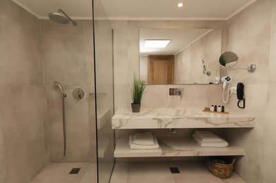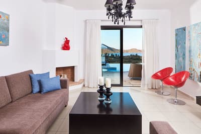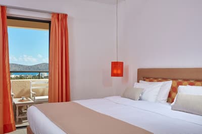 Située aux étages supérieurs, elle offre des vues dégagées et rafraîchissantes sur le golfe d'Elounda, les jardins paysagers et la piscine du complexe. Détendez-vous sur le balcon privé en plein air et sirotez la boisson de votre choix tout en contemplant le paysage.