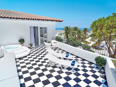 Conçue pour accueillir confortablement trois personnes, elle dispose d’un bel espace de vie et est située au rez-de-chaussée. Sur le balcon privé ou la terrasse, vous pourrez vous détendre et contempler la vue sur les jardins méditerranéens luxuriants.
