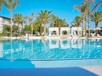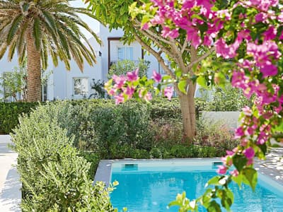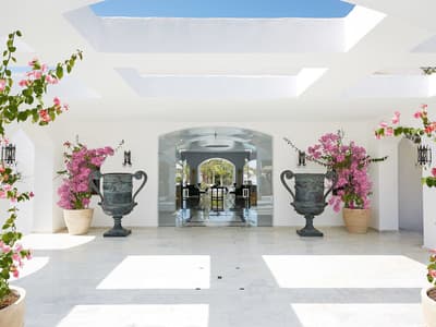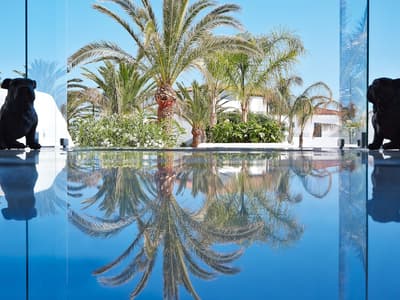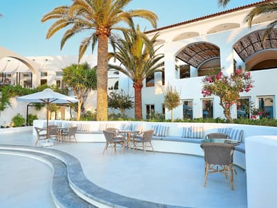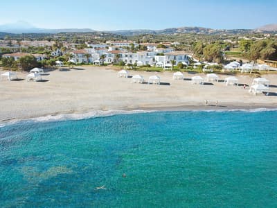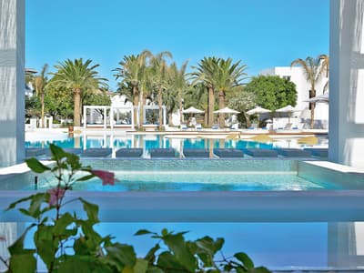 Les gros clubs crétois, pas vraiment votre verre d’ouzo ? Regardez donc du côté de cet hôtel ! 69 suites seulement, disséminées entre bâtiment principal et villas, le tout d’un blanc immaculé. Pénétrez dans le lobby, vaste, aéré, avec de grandes photos et des sculptures, entre autres d’animaux. Vous avez opté pour l’option Famous ? Bien sûr que vous êtes une célébrité ! Un check-in express, et vous aurez même votre plage séparée. Dans les chambres souffle aussi ce mélange de classique et de modernité, peut-être un peu suranné, mais avec toujours cette superbe luminosité. Mais vous voilà comme aimanté par la piscine lagon : 700 m2 d’eau salée, et chauffée par le soleil. Qu’il fera bon s’y jeter avant de s’allonger sur un transat moelleux, ou sur ce lit à baldaquin, encore mieux ! Pour l’instant, place au petit déjeuner : pantagruélique, qu’on soit bec sucré ou tendance healthy. Même les enfants chipotards se prennent au jeu : il faut dire qu’ils ont un buffet rien que pour eux ! D’ailleurs, vous êtes bien venus en famille ? Parce que les petits vont vous dire merci ! Et vous, vous pourrez suivre votre cours de yoga, puis aller plonger : 300 mètres jusqu’à la mer ! Après rendez-vous est donné au Bar panthère, le bien nommé : coussins zébrés, photos de félins, ok, il détonne, l’Afrique est pourtant loin ! Ce soir, dîner au restaurant Gourmet, poisson frais et fruits de mer : vous reviendrez tout minces et tout bronzés...