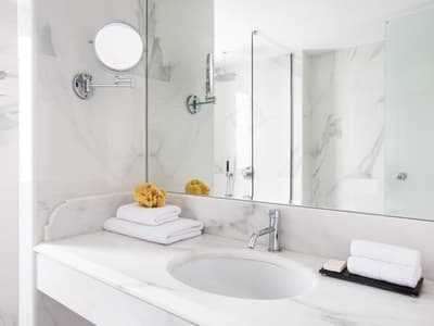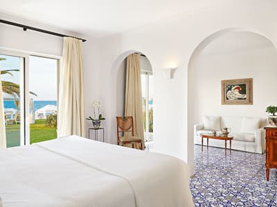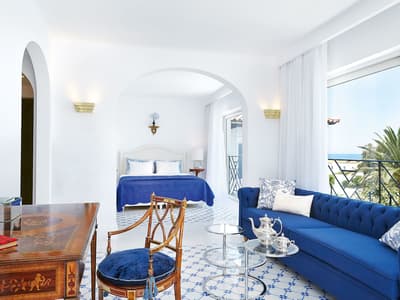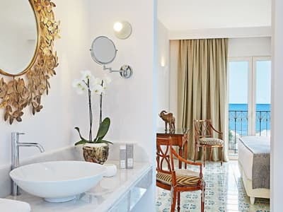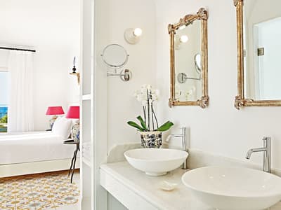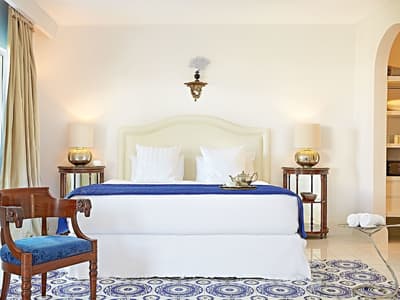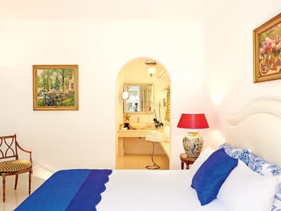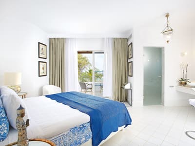 Luxueuse et confortable, la décoration est dans un style méditerranéen avec un beau carrelage à motifs, un mobilier style vintage relooké et se complète dans une dominance de blanc. La chambre est dotée d’un lit double King size et la salle de bains en marbre design est équipée de deux lavabos et d’une douche à l'italienne. Ambiance détendue !