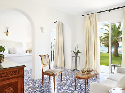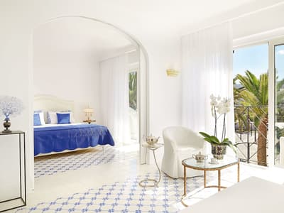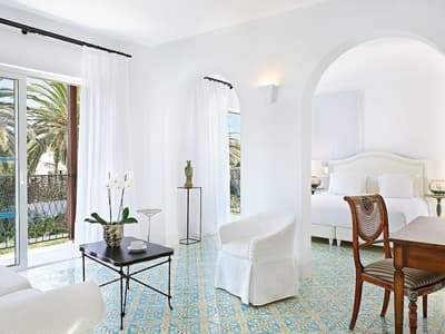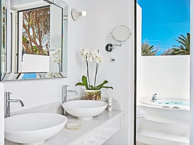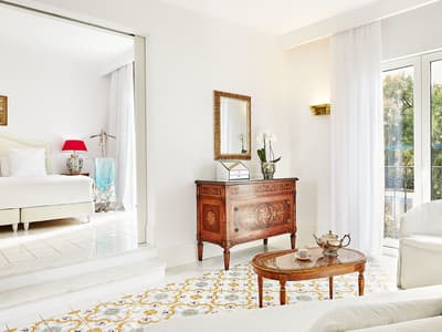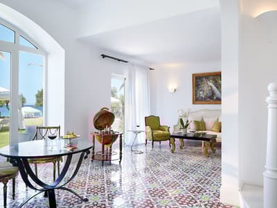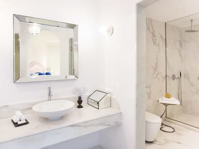 Luxueuse et confortable, la décoration est dans un style méditerranéen avec un beau carrelage à motifs, un mobilier style vintage relooké et se complète dans une dominance de blanc. Elle comprend deux espaces de couchage séparés avec un lit double King size et deux lits simples/sofa supplémentaires. Les deux salles de bains privées en marbre sont équipées d'un lavabo et d’une douche à l'italienne. Ambiance détendue !