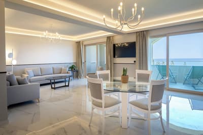 Plus spacieuse, elle procure encore plus de confort. De son balcon aménagé de belles chaises, elle profite d’une vue merveilleuse sur l’océan. Elle accommode un très grand lit et dispose d’un canapé-lit dans le coin salon. Salle de bain chic avec douche à effet de pluie.